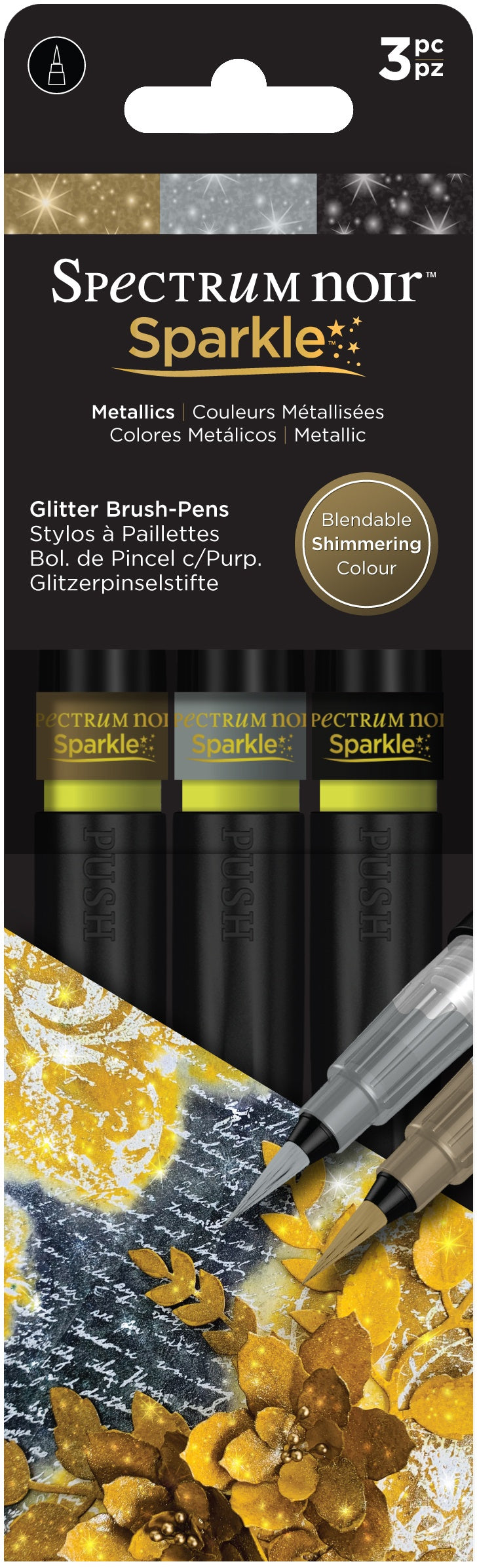 Spectrum Noir Sparkle Glitter Brush Pens 3/Pkg Metallics