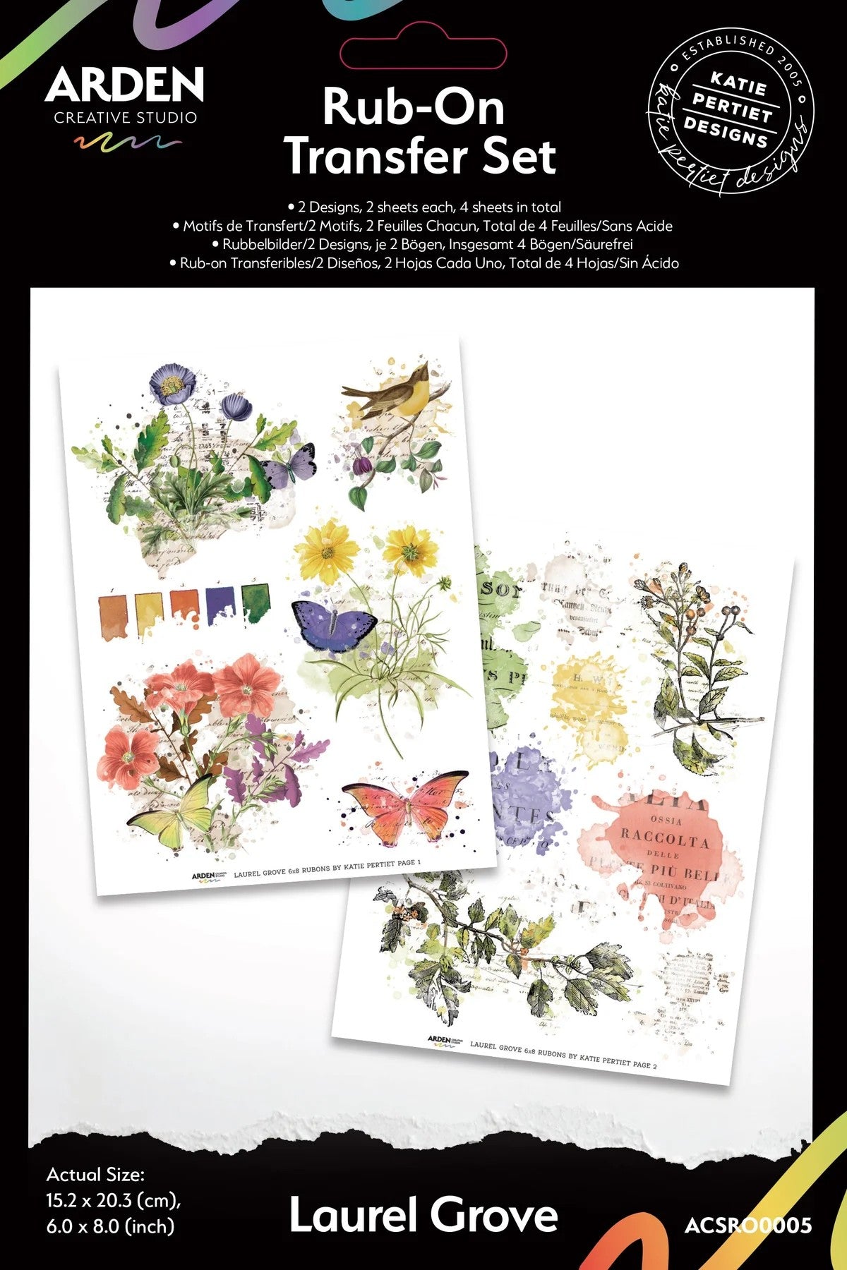 Arden Creative Studio Laurel Grove 6in x 8in Rub-On Transfer Set / Décalques