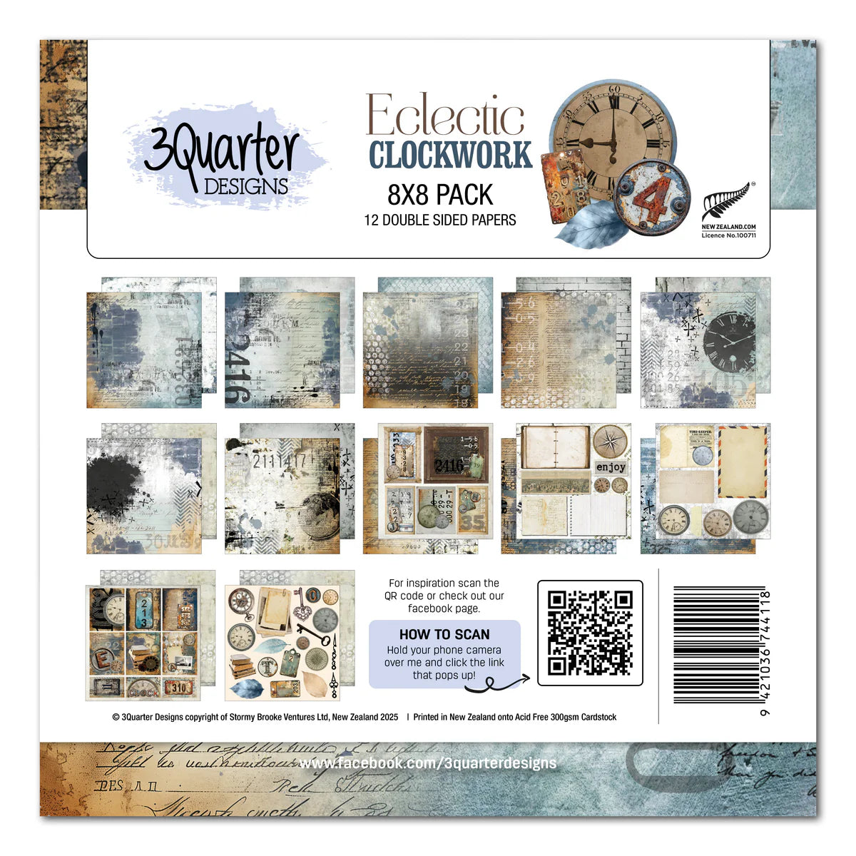 3Quarter Designs Eclectic Clocks 8x8 Paper Pack / Papier